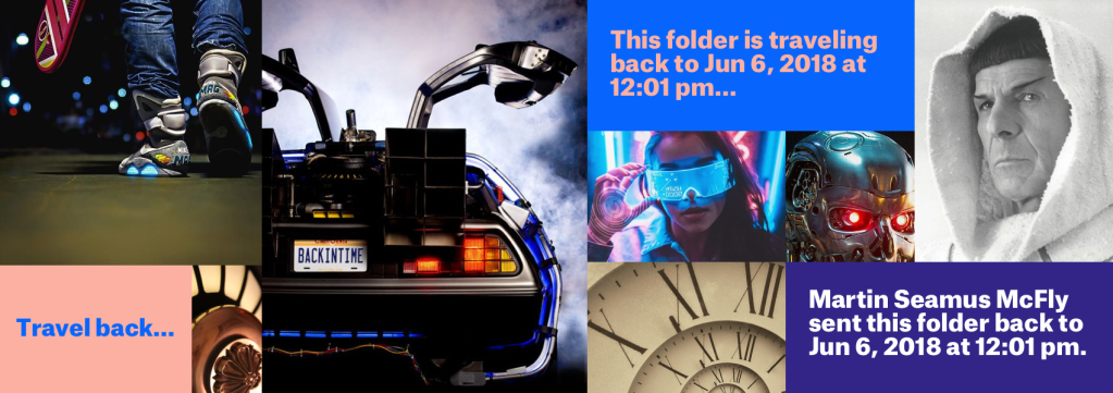 While Dropbox has an established voice, if we were playing around with time travel, we needed a consistent way to talk about it. As the team started to iterate on the design and copy, I realized that there were different directions we could go with the tone.